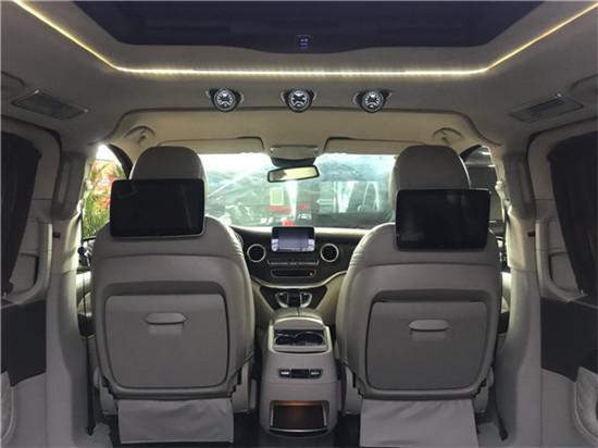 奔驰V260商务车迈巴赫VS660版商务车的后排电动沙发座椅,既可以平躺成床,也可以是一张容纳三人同时乘坐的舒适座椅,无论是乘坐还是休憩都是上佳选择。