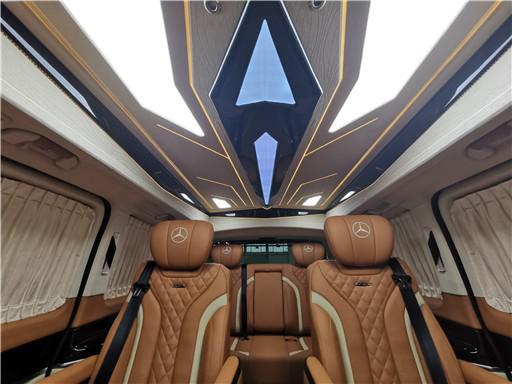进入奔驰V260L7座改装后舱,立刻就会被它的豪华绚丽而征服,整车环保真皮包裹,游艇级柚木地板铺设,豪华感无处不在。全部采用真皮制作,豪华木饰装点,带有按摩加热通风功能。后舱前为两个独立航空座椅,第二排座椅安装进口首席航空座椅,加热通风按摩功能齐全,最大限度的减缓您的乘车疲惫。八向电动调节:电动头枕,电动腿托,前后电动调节,电动靠背调节。第三排为一组沙发座椅(可电动展平,形成一张舒适的沙发床)。
