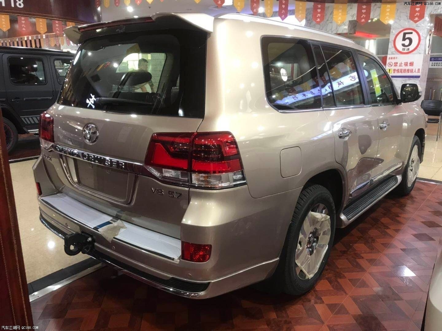酷路泽5700 19款 VXR 12气 底升颜色金/棕,类型中东-现车配置:19款GT前后包围 雷测,底升 12气囊,遥启,天窗 LED氙灯 冰箱 20 轮 环影系统 真皮电动座椅,前排座椅通风,8速,电动后备箱门 油箱138L,9寸屏幕导航,10.1寸后座娱乐系统,全地形全时四驱,四区自动空调,桃木内饰,真皮 桃木 方向盘,多功能方向盘,一键启动,无线门锁,智能卡,中控锁,自动感应雨刷,大灯清洗装置,电动折叠后视镜,防炫目内后视镜,侧脚踏,前、后雾灯,地板照明系统,车辆稳定性控制系统(VSC), 空气动态底盘(KDSS),盲点监测(BSD),倒车后视辅助(RCTA),预碰撞安全系统(PCS),车道偏离警报(LDA),转弯辅助功能,泊车辅助,上坡辅助(HAC), 胎压监测,巡航定速,后尾翼,行李架,拖钩 !