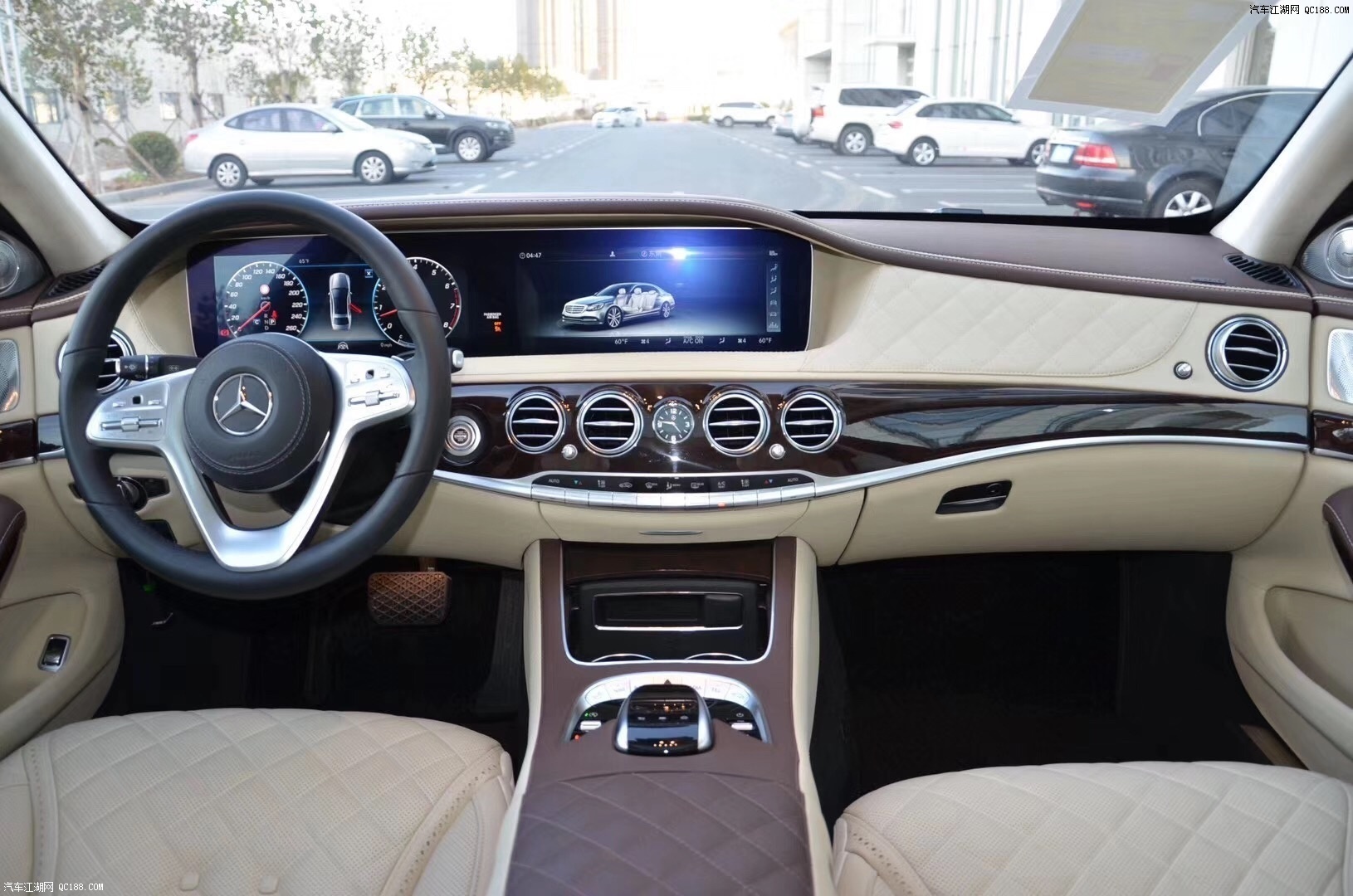19款奔驰迈巴赫加长S450普尔曼5.98米 详细配置:nappa皮方向盘,迈巴赫包围,迈巴赫680中网,全季节轮胎,20锻造迈巴赫轮,黑顶,舒适包,p01豪华包(360环影,前座椅通风,无钥匙启动,无钥匙进入,主动泊车辅助,电动后窗遮阳板,前座椅按摩,前座椅加热)雷达测距,并道辅助,后舱16向迈巴赫座椅,带通风、加热、按摩,记忆,舒适腿托,迈巴赫折叠商务桌板,高效快速制冷,加热原厂杯架,12色自定义气氛灯,后舱原厂私密电动窗帘,德国柏德原厂进口真皮咖米双拼色,可升降私密雾化液晶玻璃,高清1080PX1920,11.6寸播放器,支持4K视频播放,支持无线Wi-Fi及热点上网,支持蓝牙无线耳机,支持与原厂音响蓝牙连接,高速USB充电 标配:一键启停,双区空调,氛围灯,无钥匙启动,声控,柏林之声环绕音响,前座椅电动、腰部支撑、记忆、电吸门,电动折叠后视镜,电尾门,滑动全景,盲点辅助,车道保持辅助,倒影,LED,自适应远光辅助,主动刹车辅助(具体配置以实车为准)