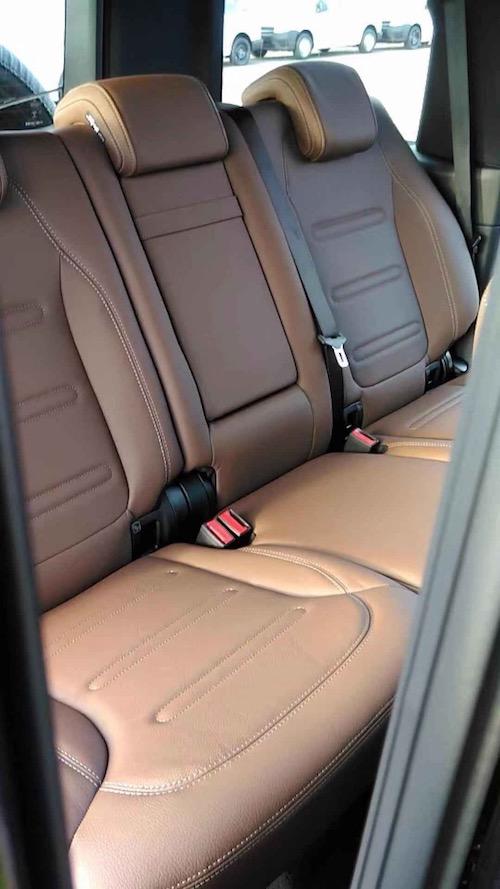 20款奔驰G350原先无论经历如何包装,选用各种高级材料重塑车厢,但从刻板的内饰面貌上只能传递出工具车的印记。如今进入全新奔驰G级 (配置|询价)的车厢后,能够看到最新奔驰家族化内饰设计,眼前的景象完全看齐自家SUV旗舰。车厢内除了经典的实木饰板外,还应用了金属、碳纤维和皮革等高级材质。2019款奔驰G350中控台中央位置,精心按照1中、2后、3前顺序安放有三把锁的控制按键,内饰布置在保持G级传统功能位置的同时,作以精心优化,做出了符合身价的科技感和豪华感。内饰颜色多选,满足客户不同喜好需求。