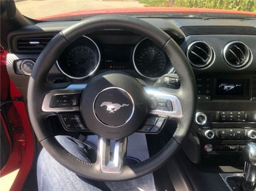 福特野马2.3T敞篷跑车全新三辐式多功能运 动方向盘,布局设计让驾驶者感觉如同置身于飞机驾驶舱一般。福特野马2.3T不仅仅是舒适。福特野马2.3T软质仪表台不会粗糙的手感,真皮方向盘、真皮 座椅都可以用细腻来形容。福特野马2.3T中控台上每一个按键,每一个旋钮都值得一赞,没有哪个会有生涩感,能颠覆你对美国车的印象。(更多优惠详情文章底部电话及微信咨询)