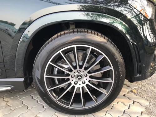 20款奔驰GLE450前脸造型也采用了奔驰最新的家族化设计风格,前保险杠上硕大的通风口带有明显的AMG风格,大尺寸的轮毂和刹车盘都透露出浓厚的运动气息,车尾方面则采用了全新造型的LED尾灯和多边形排气管。