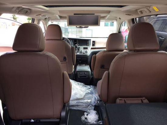 丰田塞纳LTD顶配商务车依然采用电动侧滑门设计,方便乘客上下车辆。桃木镶嵌的中控台更显格调高雅,方向盘集成多种功能,操作便利。方向盘集成多种功能,操作便利减少对安全的影响并且带有语音控制。丰田塞纳车舱宽阔,安静,座椅全部采用双色真皮。丰田塞纳它是这些中型MPV车型中唯一一款采用了全轮驱动方式的车型。只有当前轮打滑的时候,才会将动力传递给后轮,从而既降低了油耗又提升车辆的通过性和稳定性。丰田塞纳商务车在配置上增加了DVD、倒车影像、导航、氙气大灯和不锈钢镀铬装饰。