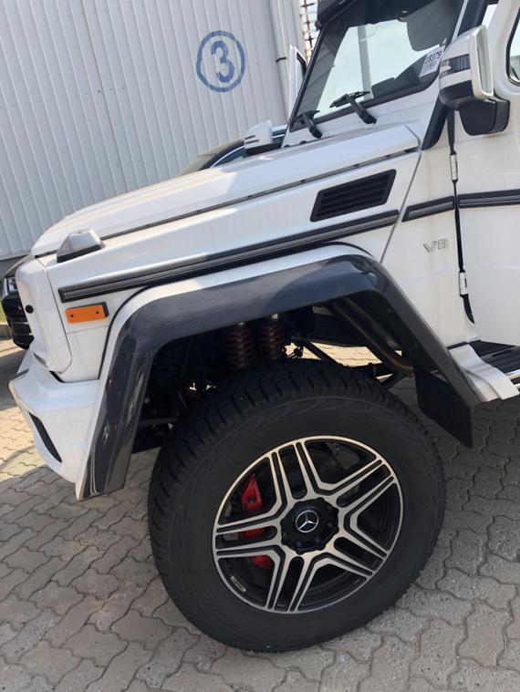 | 19款奔驰G550 4x4 | 白黑 | 285-305万 | 单天窗、22轮、红卡钳、双减震、氙灯LED日行灯、多轮廓电动包裹座椅、翻毛皮内饰(翻毛皮双色座椅、翻毛皮方向盘、翻毛皮门板、翻毛皮内顶)、前排座椅通风加热、二排座椅加热、哈曼音响(14个扬声器)、三把差速锁、中控碳纤维装饰、底盘舒适度调节、脚踏、前电眼、倒影、导航、多功能方向盘(蓝牙、定速巡航、换挡拨片)、双区空调 | 现车 |