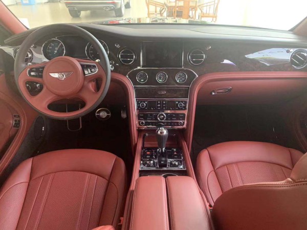 内饰部分:2019款全新宾利慕尚加长版,由克鲁工人纯手工打造,真皮和木材的选用也是不计成本的,营造奢华氛围也并不浮华,品味极佳,选用的木材,都是整块的实木,用料相当考究,一台车要要历时400个小时,其中有150个小时是用于手工处理车内的真皮内饰。中控部分镶嵌一块8英寸触控屏,支持Carplay、60G硬盘,并且具有4G和互联网连接,商务用途突出。