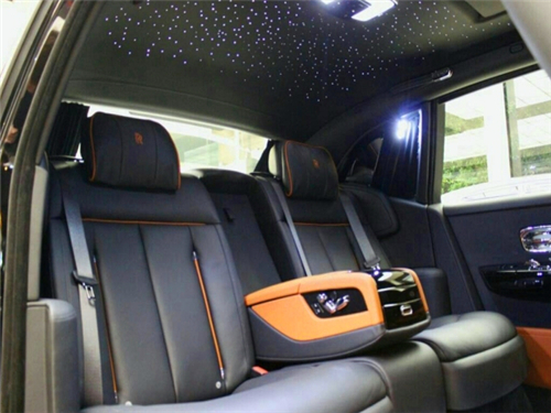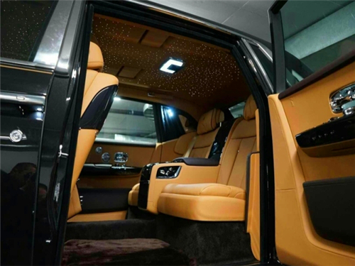 19款劳斯莱斯幻影加长版继续配备星空车顶,其由4000余根光导纤维制成,而光点汇聚成的图案也可以由车主进行定制。