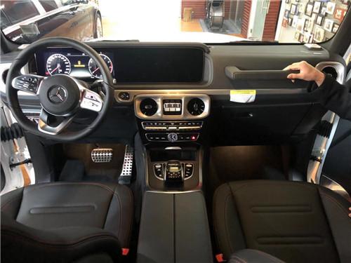新一代G级使用了奔驰品牌最新的家族式设计元素,包括仪表盘、中控显示屏、空调控制区、COMAND操作区和带有双拇指控制(Dual Thumb Controls)的三辐式方向盘等。中控台上的“3把锁”、副驾驶前方的扶手等G级经典的设计元素在新车上均得到保留。中控台功能按键盘设计比较紧密,但是做工精细。中控台配置COMAND信息娱乐系统和一个8英寸大尺寸液晶显示屏。