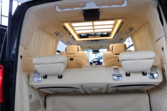 内饰细节配备方面:高清仪表、中控独立悬浮液晶显示和三幅式多功能方向盘更加精致和实用。而为更好适应国内道路状况和交通问题,还特意采用了增强版的7速手自动变速箱来巩固行车驾驶体验。奔驰威霆改装迈巴赫VS680凭借行政座椅,前排乘客侧的后排乘客即使在长途行车中也能够完全放松。仅需按下一个按钮,便可将座椅设置到舒适的角度,最大倾斜角度为 43.5 度。一个附加的伸出式腿部支撑进一步增强了舒适性。配备电动可伸出式脚踏板时,能够创造出一个适合睡眠的舒适座椅角度。
