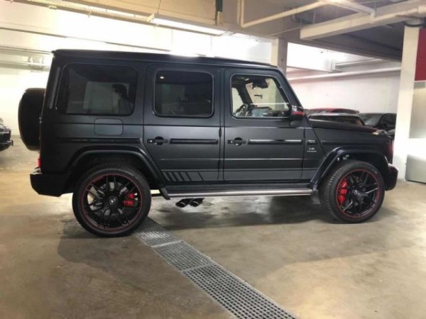 19款奔驰G63 (配置|询价)AMG动又独特的外观造型设计,经过重新设计的前进气格栅与两侧圆形大灯相互呼应,整个前脸的造型更为抢眼。进气格栅的多幅式镀铬采用了镂空的设计,保险杠也经过了重新的设计,让新款大G63的前脸看上去更为粗犷,氙气大灯下方还增添了时下流行的LED日间行车灯设计,看起来更具时尚感。