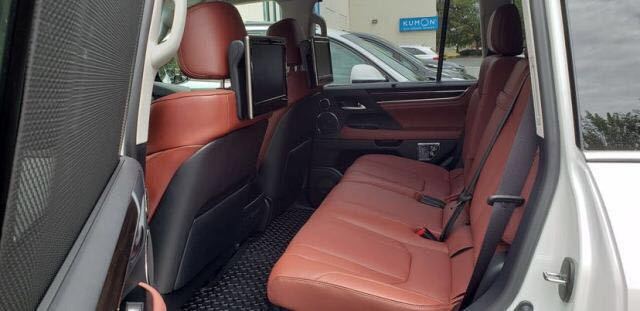 19款雷克萨斯570 配置:八座,21轮,电动天窗,LED大灯,LED雾灯,加热方向盘,电动调节外观后视镜(可加热,电动折叠,防眩光,倒车自动角度调节,记忆功能,摄像头),后隐私玻璃,前雨量感应雨刷,风挡玻璃除冰除雾功能,铝制行李架,方便进入系统(驾驶室和方向盘自动回应),电子仪表盘,高级真皮座椅,实木内饰,10项电动可调节驾驶员座椅带记忆,8项乘客座椅电动可调节,前排及第二排座椅通风加热,冰箱,巡航,智能卡,高级音响,后娱,蓝牙,360环影,全彩抬显,迎宾灯,脚踏照明,多地形反馈,盲点,车道偏离提醒,电眼,雷达测距