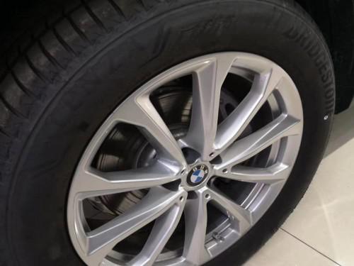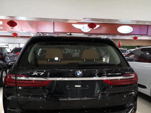19款宝马X7车身侧面上方配有黑色行李架,前翼子板下方为长条状空气导流槽,腰线较为低矮且呈上扬之势,选用21英寸双五辐式拼色轮毂。车尾造型方正,LED尾灯组与粗壮的银色饰条贯穿相连,采用上下分段式电动尾门,排气采用双边共四出式布局,保险杠下方两侧配有大尺寸镀铬尾喉装饰。
