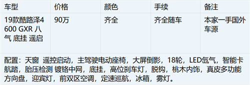 19款丰田兰德酷路泽4600中东版 仍然延续了兰德酷路泽的越野血统,凭借着比前辈更强大的越野性能为这个家族的辉煌传奇色彩又抹上了浓重一笔。采用的是一款4.6L全新发动机 ,长宽高:5095*1980*1890,最大功率可达227 kw,最大扭矩为439 N/m,最大马力308匹。在变速箱上也由老款的5速自动改为了6速手自动一体。