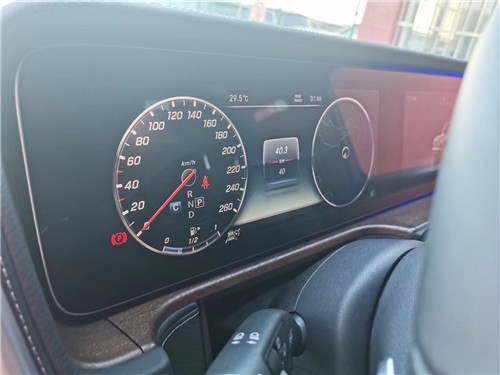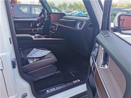 19款奔驰G500内饰采用了奔驰最新的双屏幕式设计,全液晶仪表盘和中控台屏幕都达到12.3英寸。同时内饰质感和工艺都有了很大的进步。较之于现款车型,它的内饰发生了巨大的变化,融入了不少现款奔驰S级 (配置|询价)、E级的设计元素,从而变得更加豪华,而家族式的连屏设计则凸显了车内的科技感。