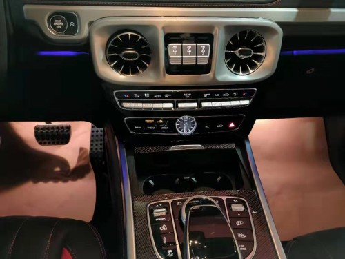 19款奔驰G63拥有宽敞充裕的车内空间和多种座椅布局方案,能够充分满足您对空间自由度的要求。中控台多处均采用碳纤维材料覆盖,名贵的选材及精湛的内装令人拍案叫绝。