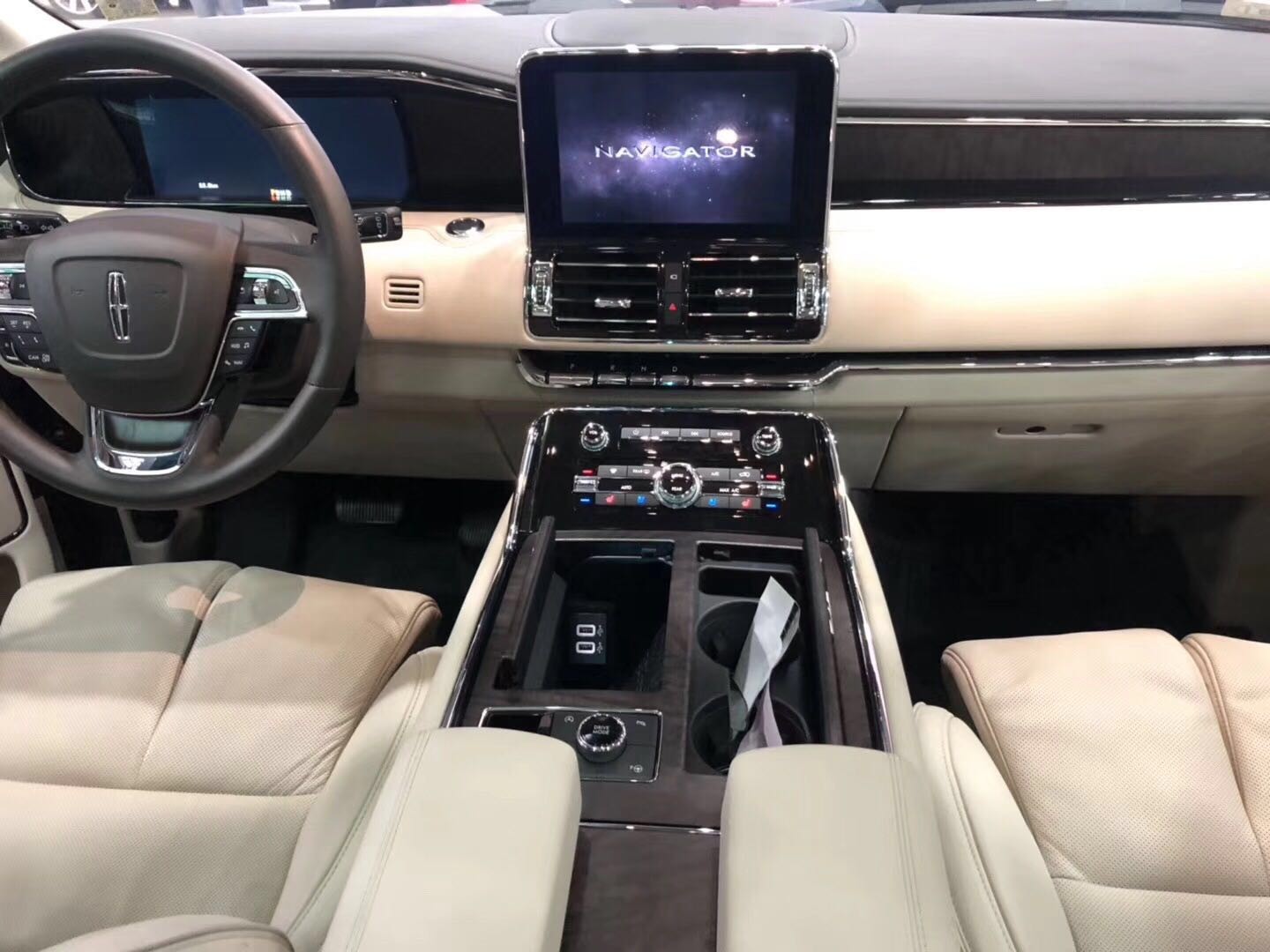 18款全新林肯领航员的中控设计十分简洁,极为考究的做工搭配着整齐有序的中控布局,透露出一丝优雅和宁静。两块大尺寸液晶屏幕的加入也让全新领航员具备了这个时代不可或缺的科技感。