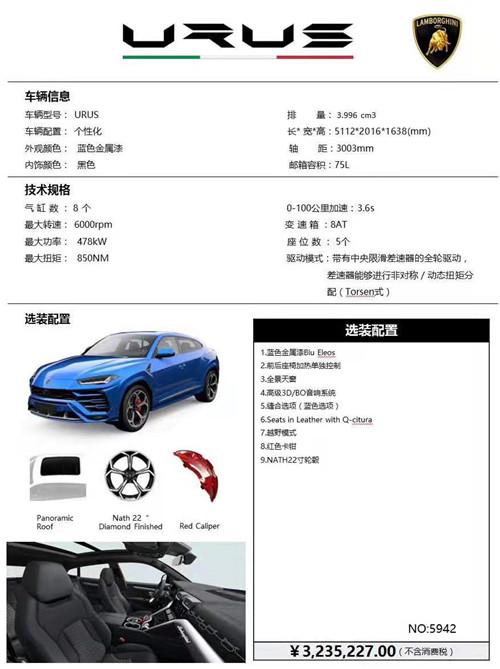 目前编辑了解到。2020款兰博基尼Urus (配置|询价)现车国六排放标准,最新价格给力热销。兰博基尼Urus堪称当今最强大的SUV,Urus堪称当今最强大的SUV。