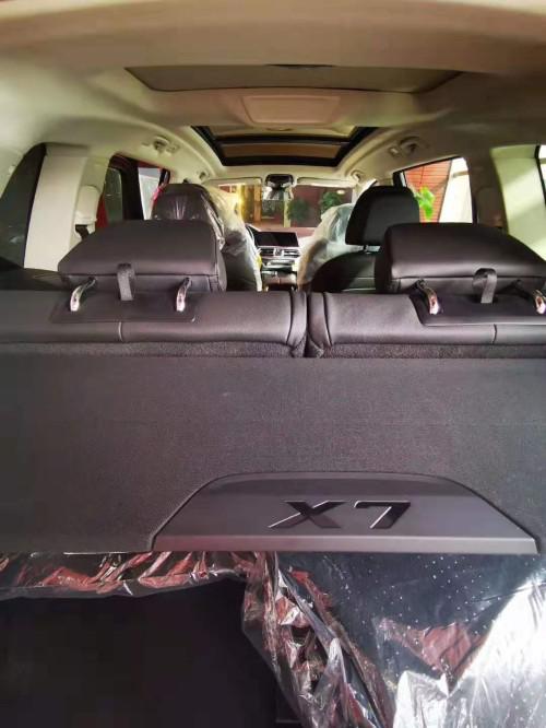 19款宝马X7黑/黑6座:全景天窗 carplay 胎压监测 四区空调 智能卡 前座椅加热 丝绒脚垫 运动座椅 第三排座椅 远光灯辅助 盲点监测 电眼 倒影 车道保持 自动变光加热后视镜 LED雾灯 自适应双轴空气悬架等 停车辅助包(附加停车辅助 环影)真皮座椅 远程启动空调 智能钥匙 水晶档把 。
