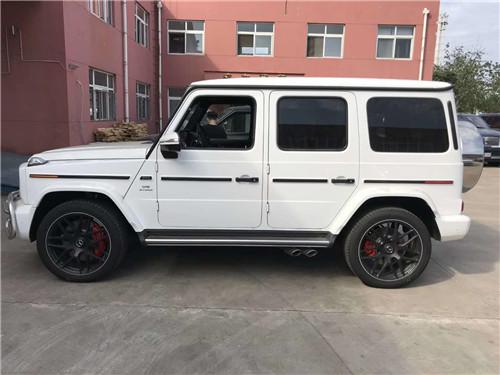 2019款奔驰G63的前格栅造型和21寸的轻质AMG车型专属铝合金轮毂更加抢眼。2019款奔驰G63采用AMG车型特有的轮拱饰条、不锈钢迎宾踏板以及不锈钢防擦条,挡泥板上的“V8 BITURBO”标识以及后门上的“G 63 AMG”铭牌也十分醒目。