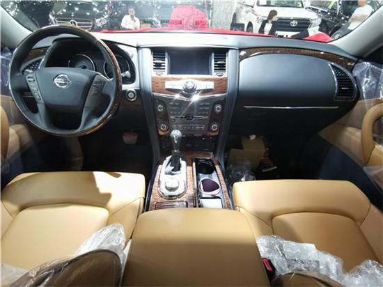19款日产尼桑途乐Y62 4.0XE的内饰兼具了舒适性和功效性,仍旧为三排座车型,广大憨厚的形象在茫茫车流中仍然非常刺眼,极具视觉打击力,平实的线条勾画出原始粗豪的形状,加之粗壮的车顶行李架,纯洁越野气质无比凸起。
