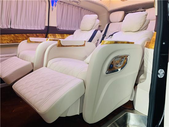 进口奔驰v级v250升级改装高顶7座商务车,乘客舱S级 (配置|询价)豪华独立座椅人体工程学规划,带有一键式翻开及回忆功用,并配备加热、通风、气动按摩、一键式弹性腿托功用,带来头等舱级舒适领会巧夺空间,私家客厅级后舱领会,座椅均选用肯尼亚鸵鸟皮及欧洲小牛皮包覆。中排座椅还可180°旋转与后排构成对坐,构成商务洽谈的形式。后排座椅可电动放平成床。