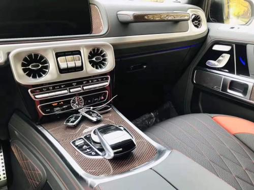 2019款全新G63内饰方面,新G63保留了新G500的整体设计,除配色差异外,新车还换装了全新造型的平底式AMG运动方向盘,其两侧配以打孔皮质包裹,下部镀铬装饰的造型也与新G 500明显不同,看上去十分战斗。此外,全液晶仪表盘+中控大屏的双12.3英寸屏幕设计在新车上也没有缺席,营造出了浓郁的科技感。