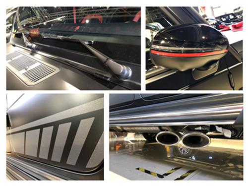 AMG高性能排气系统的声浪可根据当前驾驶模式通过3个排气阀门自动调节,也可以手动开启,无骨雨刷与风挡贴合度高,清洁效果更好,雨刷尺寸并不算大,但应对本就面积不大的风挡完全没有问题。后视镜与G级硬朗的气质相符,当后方有强光照射时,后视镜自动切换为防眩目模式,防止强光刺眼。