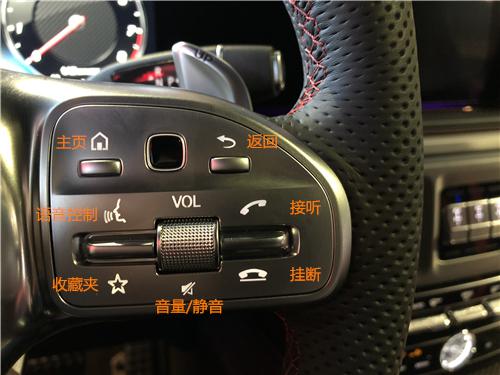 全新奔驰G63的AMG方向盘手感极佳,驾驶辅助和仪表信息通过左侧按键控制,如自适应巡航设定跟车距离4级调整。右侧选择键同样为触控键,可直接控制中控屏和多媒体的内容,下方的按键可控制音量和蓝牙电话,转向灯和前后雨刷功能都集成在了左侧拨杆上,换装9G-TRONIC变速箱后,在换挡速度、平顺性上都有了一定提升,更多的挡位也有助于提升燃油经济性。