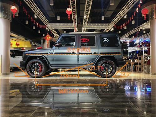 全新G63车身尺寸的增加丝毫没有影响它的经典造型,脚踏上方的拉花更是平行进口限量版独享的配置,4864*1984*1964mm的车身尺寸要比老款更大,同时轴距也达到了2890mm,改善了车内空间。现在奔驰G63的使用大部分都是在城市道路中,为了更加适宜使用环境,全新款奔驰G63底盘结构也有所改变,悬挂改为整体桥悬挂。车身材质也改为钢铝混合,减重后更加适宜城市道路的操控,但这些改变并不意味着奔驰G63完全妥协于城市,它的越野性能依然强大。