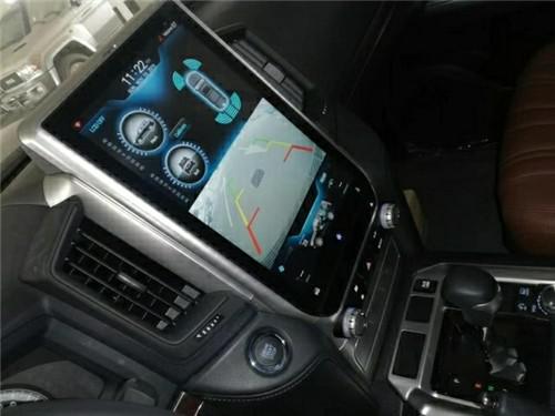 19款丰田酷路泽4500整个操控区域色调为深色系,仪表盘、方向盘和排挡等位置均配以桃木装点,尽显豪华质感。在屏幕色彩和界面设计上,基本都向新的雷克萨斯LX (配置|询价)看齐,界面设计非常直观,操控十分顺畅。新款车型提供一个多地形监控器,能够利用安装在车子四周的四个小摄像头,将路况情形显示在仪表板上的一个屏幕上。