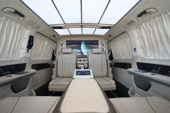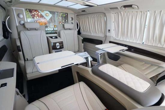 新车在原有大方简洁的外观基础上加装了半自动电动门、车身同色处理。摆脱以往威霆的朴素风格,显示出奔驰威霆高端大气的一面。 个性化的奔驰威霆房车改装,一方面避免了商务房车的大同小异,另一方面是它满足了我们对个性化时尚的追求,自我生活品位的体现,这也是许多商业大佬会旋转奔驰威霆房车改装的路子,而非原型车辆的重要原因之一。