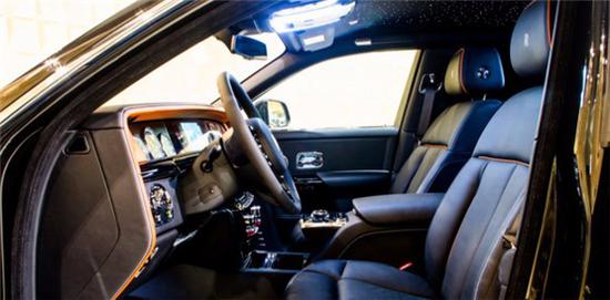 新款劳斯莱斯流光熠世·幻影典藏版车型采用人体工程学电动座椅,椅背可调动调节倾斜27°,腿部支撑则可电动升高68°,同时配备了可提升30°的脚托,使乘坐体验自然而舒适。座椅提供海军蓝色/贝壳珍珠色双色拼接的真皮座椅,并可自由选择深/浅两种色调搭配。另外,座椅中央扶手、车门、后座控台,以及餐桌背板上都采用了钻石形状的花纹式缝线,在B柱下缘镶嵌了专属车身号码。该车还配备了专属的幻影Suite后车门置物空间,并拥有女士版和绅士版两种选择,女士版的车门储物空间为隐藏式香水架,可放置三瓶香水;绅士般则为隐藏式腕表收藏盒。