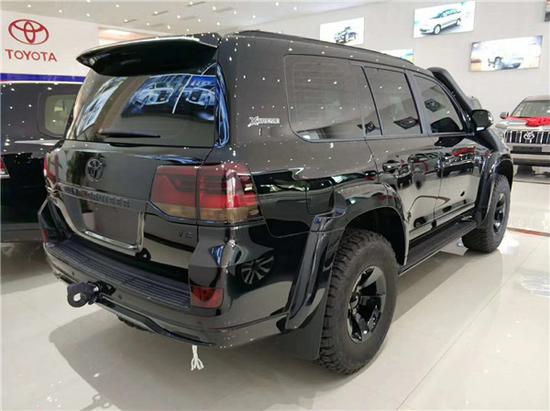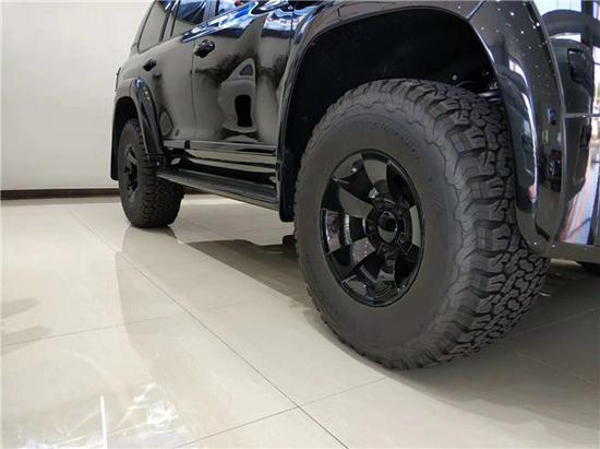 19款兰德酷路泽4500黑金刚 环保公开19款兰德酷路泽4500黑金刚,黑/黑,BF GOODRICH 315/ R17 R ALL-TERRAIN T/A KO2轮胎,黑金刚轮毂盖、备胎扳手、定制黑金刚挡泥板、涉水器、发动机进气罩、25MM 悬挂升高、OME 高性能减震及弹簧、黑金刚喷涂套件、前排电动座椅、真皮座椅、10英寸导航屏STEREO –双后头枕DVD娱乐系统、内门把手镀铬、4 路全景摄像头、电动可折叠后视镜、天窗、新款无线门锁、LED 组灯。