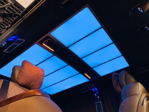 奔驰迈巴赫VS680改装整车加装了登车踏板、全车镀铬套件、LED迎宾踏板、LED灯饰及油漆同色,使整车更加尊贵霸气。竹苞松茂的时尚窗帘,8偏向电动调治按摩航空座椅,座椅阁下的文娱节制中隔屏,车内电器可任意一键操纵,可开启式全景天窗,在浩大的夜景中,共同“满天星”格调,好像在豪华的宫殿。