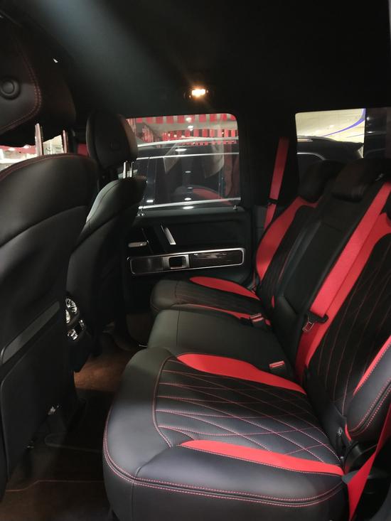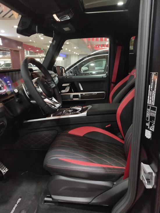 配置: 9速AMG变速箱, 磨砂黑金属漆 ,黑色AMG独家黑红双拼内饰,干椒红碳纤维饰件,红色安全带,可调阻尼底盘,主动车道保持,主动刹车辅助,AMG红色卡钳 ,雷达测距,柏林之声3D音响,电动天窗,风挡玻璃加热,超细纤维内饰(鹿皮顶),64色氛围灯,360环影,停车辅助(中规智选套装,选装加24200),几何多光束LED大灯(中规G63选装加19000元),AMG暗夜包,增强座椅舒适包(多轮廓座椅,通风按摩),AMG高性能Nappa真皮方向盘,AMG驾驶包时速240公里更加运动和灵活的驾驶体验(底盘更运动 更灵活最高时速更高,中规无法选配)
