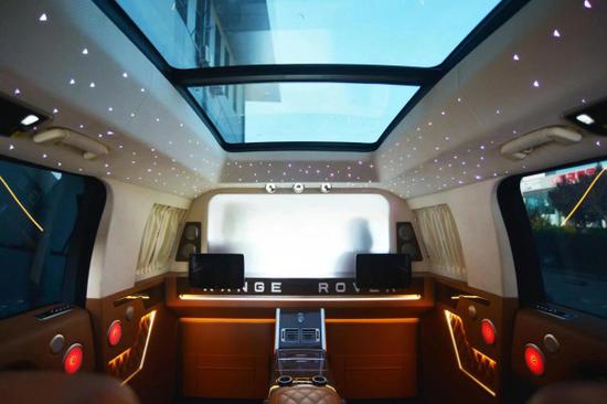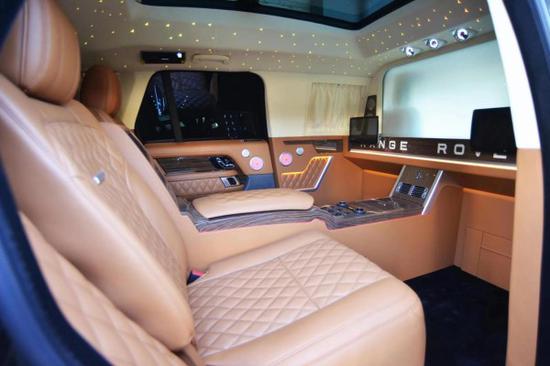 路虎揽胜皇家一号兼具豪华气派与运动风格,中控双彩色液晶大屏,集成系统触屏控制,升降式的换挡旋钮,麂皮车顶,空调分区,内饰十分豪华,搭配实木装饰,布局也更为简约,采用了全新四幅方向盘设计,座椅采用菱形走线非常讲究手工的工艺,前排座椅同时支持电动调节和加热通风的。