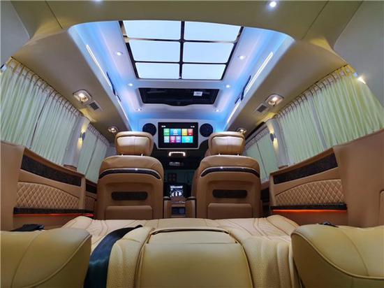 奔驰威霆改装可以改装成移动的办公室/酒吧/KTV/房车,给您的家人和贵宾一个意想不到的舒适享受和惊喜。内饰的灯光设计也是奔驰威霆的一大特色,可以让您从温馨的居家风格房车(感受家的轻松温馨,释放您工作的压力),瞬间转换成严肃的商务会议模式(化身霸道总裁,不耽误您处理公司紧急情况),再转换成优雅的私人酒吧(和您的好友/贵宾把酒言欢,诗与远方就在眼前)。