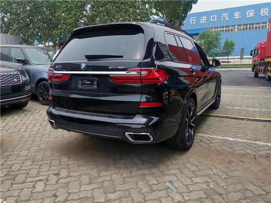 19款宝马X7 (配置|询价)车尾设计线条简单动感华丽,车顶是小巧的鲨鱼鳍天线,搭配微微下压的扰流板,让车身非常具有运动气息,大灯字被一条镀铬饰条贯穿连接,形成了一个回旋镖的造型,内部光源是多条灯带组成的刹车灯,点亮以后非常漂亮,大面积的几何横切面和曲面造型让车尾具备了爆棚的肌肉,厚重的车尾杠两侧是雾灯区,造型规整与上面的大灯交相呼应,为车尾营造了不错的光影效果。
