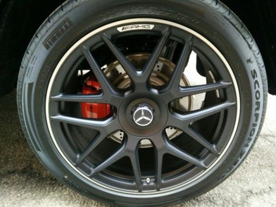 轮毂方面:这台实用的AMG最新的21吋轮毂,匹配285/55/R21的公路轮胎,加上AMG的高性能刹车。让他驰骋街道。