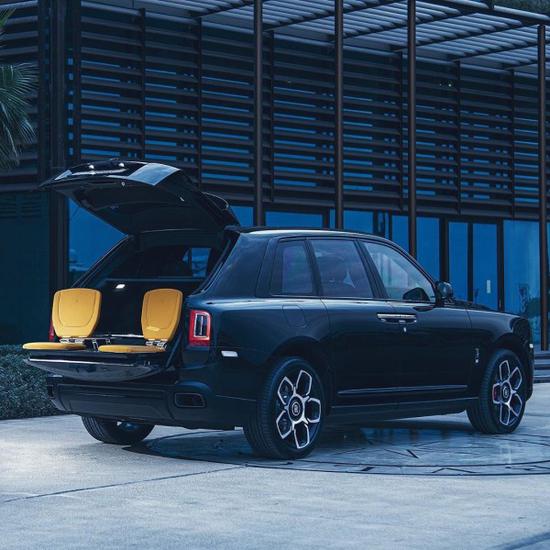 19款劳斯莱斯库里南 (配置|询价)Black Badge是基于库里南所升级打造的个性化定制版车型,整车造型与普通版相同,但在细节上则会进行更个性化的升级。其中有包括轮圈、车标、欢庆女神、内饰装饰板、钟表等必要部件都会进行特殊化处理。