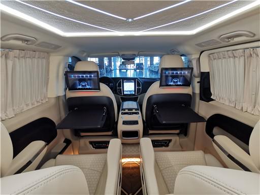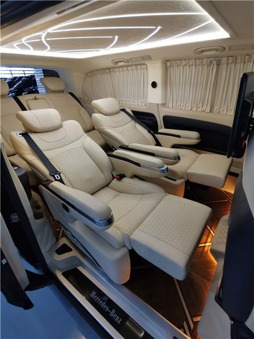 奔驰威霆改装商务车 商务接待内饰太奢华了,首先,在座椅部分,宽大厚软的真皮座椅,具备多向调节与按摩等功能更佳;毕竟MPV不是小巴士,不必追求座位数量;MPV改装应追求乘坐体验,为达到此目的,换上一套大沙发也未尝不可。得益于MPV巨大的内部空间,改装内饰时自由度更高;玩家们可以毫无压力地在MPV的车厢里打造一个豪华包厢,让乘客在行驶过程中获得豪华体验。