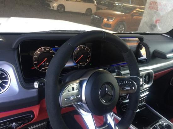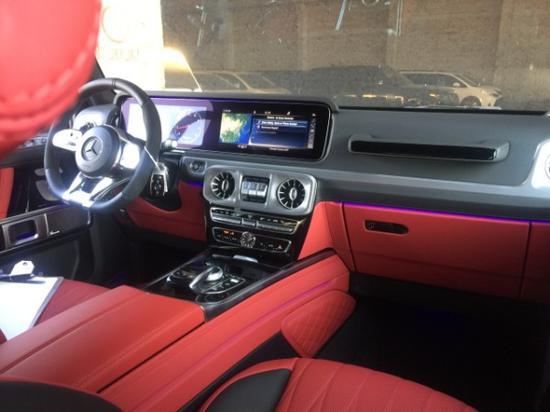2019款奔驰G63配置:DESIGNO内饰,前后红卡钳,12.3寸大屏,AMG方向盘,21寸5副轮毂,独家内饰包,菱格座椅,暗夜包,停车辅助包