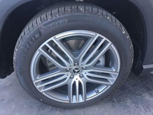 20款奔驰GLS450尽管作为GL级中期改款车型,但造型方面依然硬派,新增自动加热魔术雨刷系统。双幅飞翼式镀铬条横贯进气格栅,中间三叉星徽奔驰标大气夺目,彰显尊贵,更为柔和大尺寸的轮毂和刹车盘都透露出浓厚的运动气息。LED日间行车灯配上双镀铬装饰条,整个车头充满金属感。