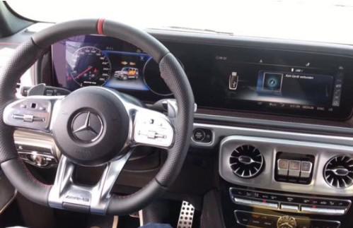 2019款全新G63内饰方面,新G63保留了新G500的整体设计,除配色差异外,新车还换装了全新造型的平底式AMG运动方向盘,其两侧配以打孔皮质包裹,下部镀铬装饰的造型也与新G 500明显不同,看上去十分战斗。此外,全液晶仪表盘+中控大屏的双12.3英寸屏幕设计在新车上也没有缺席,营造出了浓郁的科技感。