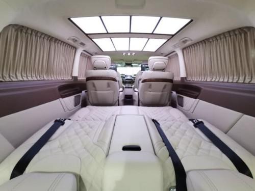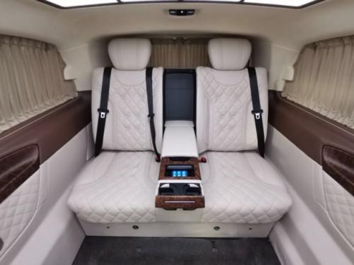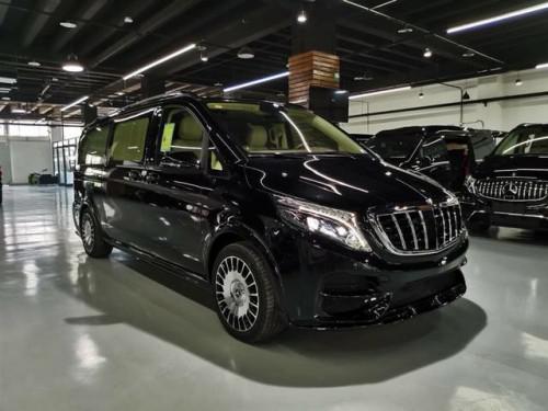 2019款进口奔驰V250商务车配置:前排负离子纳帕座椅、主副驾专用小背板、11.8寸后排娱乐(一对)、智能航空专用座椅一对、第三排沙发床(触屏)+背部四项键、仪表台(下部)包覆、桃木+皮制方向盘、涡轮出风口、主副门板包覆(一对)、中门门板包覆(一对)、车厢两侧内饰板包覆、尾门内门板包覆、车厢两侧内桃木饰条(四件)、顶饰件喷漆、顶拉手喷漆(六个)、鹿皮顶+ABCD柱+遮阳板(行云流水) 配套造型顶灯、多功能中央扶手、中排脚踏板(带灯)、个性化图案地板、进口弹性窗帘(手动)、全车隔音、铝合金踏板、镀铬门提 360环影+解码器、行李架、迈巴赫轮毂、LED大灯、小包围+日行灯、水晶标、尾门装饰条+刷中文。