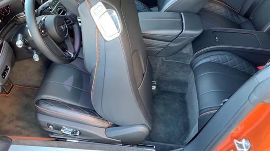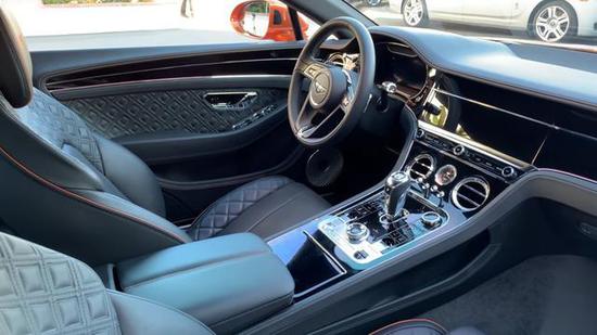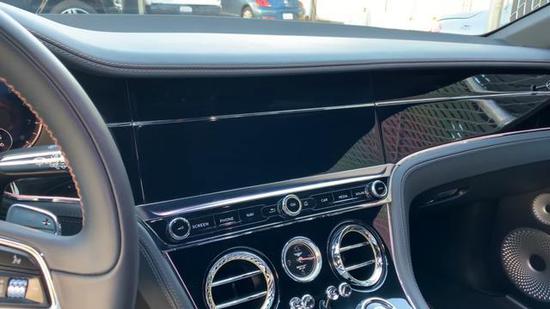 当打开宾利欧陆GT车门的那一刻,就已经能感受到他的豪华氛围,中控区域使用了一块贯穿中控台跟左右车门的黑钢琴目实木饰板,中间搭配上一条抛光镀铬饰条,让你眼到之处都是亮晶晶。而门板跟座椅使用了相同风格的皮质材料,让你的视觉跟触觉都感觉非常舒服。