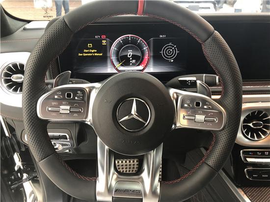 19款奔驰G63全液晶仪表盘+中控大屏的双12.3英寸屏幕设计在新车上也没有缺席,营造出了浓郁的科技感。新G63保留了新 G500的整体设计,除配色差异外,新车还换装了全新造型的平底式AMG运动方向盘,其两侧配以打孔皮质包裹,下部镀铬装饰的造型也与新G 500明显不同,看上去十分战斗。此外,全液晶仪表盘+中控大屏的双12.3英寸屏幕设计在新车上也没有缺席,营造出了浓郁的科技感。