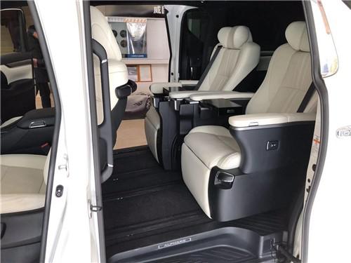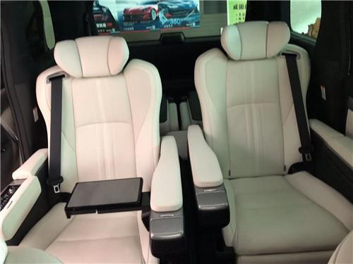 内饰方面,提供了7个座位。其中驾驶座具有8向电动调整、附3组记忆功能的电动座椅。最舒适的二排位置,搭载4向电动调整Ottoman头等舱座椅,拥有三面向头枕、独立扶手、扶手置杯架、多功能折叠桌,以及椅背最大78度仰角;前后共拥有450mm滑移长度与高度脚踏垫设计。