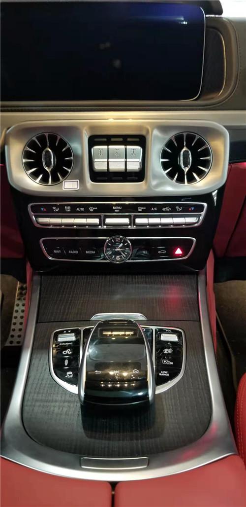 奔驰G63在内饰的豪华度上更上了一步,中控台给驾驶员的视觉冲击力更深了一步。奔驰G63车内应用了更多创新技术,还配备了带彩色TFT显示屏的AMG仪表盘、AMG主菜单和单独的挡位显示器以及采用白色照明的AMG门槛。