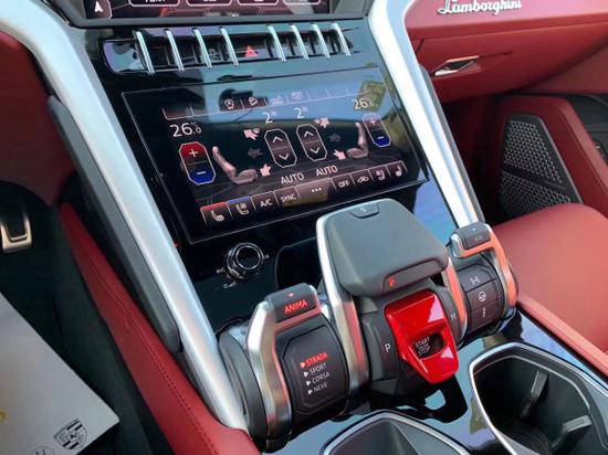 兰博基尼Urus (配置|询价)多功能方向盘采用的是平底式赛车造型,旁边是上下双屏式液晶显示屏,各种丰富的功能都集成在这液晶触控屏上。上方屏幕为车载多媒体系统,下方主要是全液晶触摸式操控空调控制区域,极具科技感。